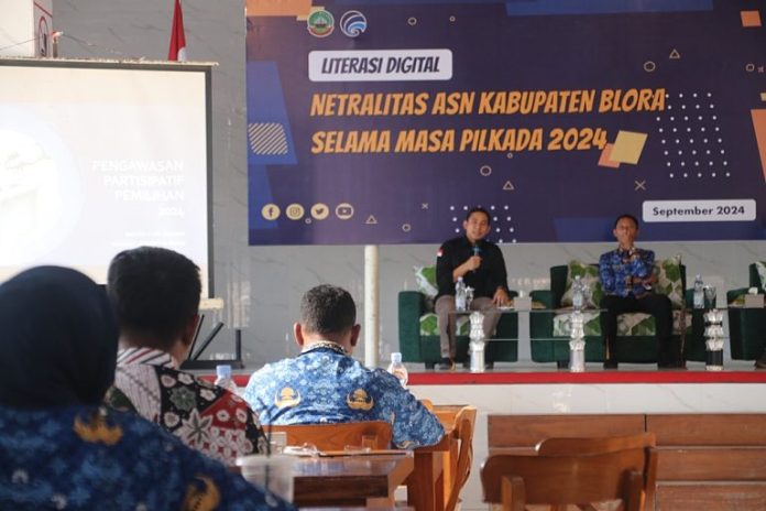 Hal itu disampaikan Asisten Administrasi Umum Sekretariat Daerah Kabupaten Blora, Bawa Dwi Raharja, pada kegiatan Literiasi Digital Netralitas ASN Kabupaten Blora Selama Masa Pilkada 2024, di Ruang Pertemuan Rumah Merah Heritage, Kecamatan Lasem, Kabupaten Rembang, Selasa (17/9/2024). Menurutnya, setiap unggahan dan komentar harus tetap dalam koridor profesionalisme ASN, yang netral dan bebas dari kepentingan politik. Pasalnya, media sosial mempunyai pengaruh yang sangat besar dalam membentuk opini publik.