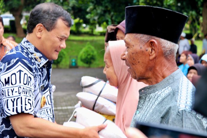 “Tadi membagikan beras secara gratis, bukan beli. Seorang dapat 10 kg kepada 600 penerima. Bantuan beras ini hasil inisiasi dari ASN, jadi mereka kumpulkan uang kemudian dibantu oleh BUMD dan stakeholder lain,” katanya saat ditemui di Kantor Distanbun, Kompleks Tarubudaya.