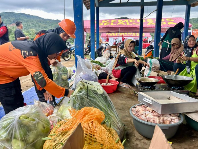 CILACAP – Kebutuhan makan dan minum bagi pengungsi maupun petugas dan relawan di lokasi longsor Desa Cibeunying, Kecamatan Majenang, Kabupaten Cilacap, dipastikan tercukupi. Dapur umum Dinas Sosial (Dinsos) beroperasi 24 jam dan menyediakan ribuan paket makanan setiap harinya.