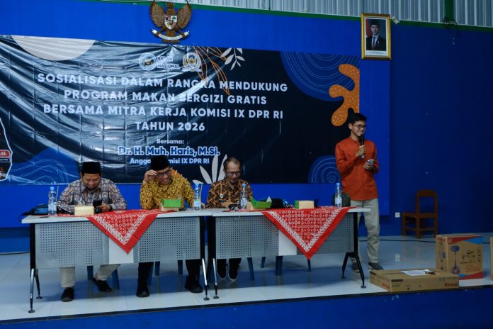 Pemerintah kembali menggelar sosialisasi program MBG yang kali ini bertempat di GOR Desa Butuh, Kab. Semarang pada Sabtu, (14/2). Acara sosialisasi program MBG dihadiri oleh Anggota Komisi IX DPR RI Muh Haris, Anggota DPRD Jawa Tengah Ida Nurul Farida, Perwakilan BGN Iskandar, serta Pimpinan Ponpes Nurul Islam Tengaran Abdul Fattah Ismail Farras.
