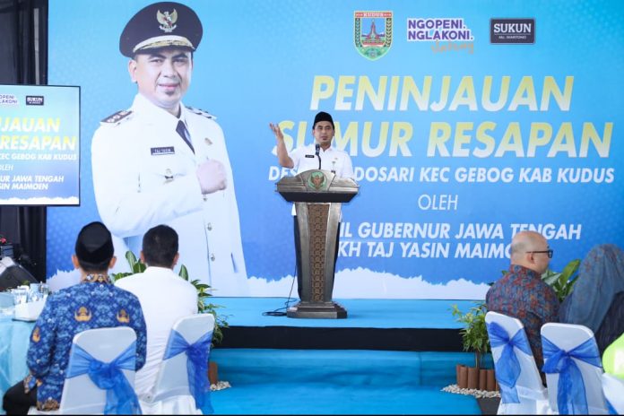 Hal itu disampaikan Wakil Gubernur Jawa Tengah, Taj Yasin Maimoen, saat meninjau pembangunan sumur resapan di Desa Gondosari, Kecamatan Gebog, Kabupaten Kudus, pada Rabu, 18 Februari 2026. Kegiatan tersebut merupakan bagian dari program tanggung jawab sosial perusahaan (CSR) PT Sukun Wartono Indonesia.