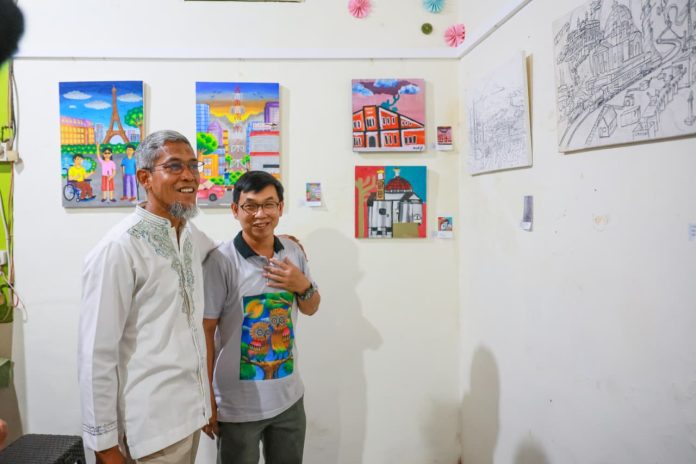 SEMARANG – Para seniman penyandang difabel yang tergabung dalam komunitas Roemah Difabel mengikuti pameran lukisan di kantor lembaga budaya Alliance Francaise Semarang, Jalan Dokter Wahidin 54 Semarang.