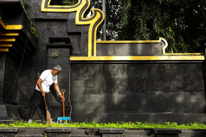 Sumarno yang masuk dalam kelompok halaman, bahkan menyusuri selokan di sepanjang trotoar di area Jalan Pahlawan Nomor 9. Tanpa segan, dia memungut sampah-sampah kabel, plastik, dan rumput di selokan tersebut.