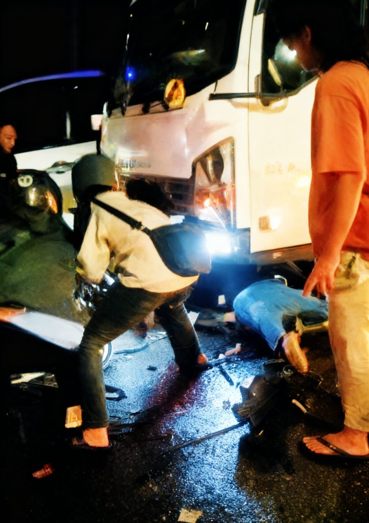 Benturan keras tak terhindarkan. Truk menyapu delapan sepeda motor dan satu mobil Xpander yang tengah berhenti. Sejumlah korban sempat tergeletak di aspal, bahkan ada motor yang terseret hingga masuk ke kolong truk. Suasana mencekam langsung membekap kawasan yang biasanya ramai itu. Warga sekitar dan petugas bahu-membahu mengevakuasi korban dan mengurai kemacetan yang mengular hingga beberapa kilometer.