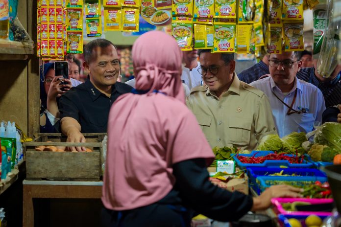 KUDUS – Menteri Perdagangan Budi Santoso bersama Gubernur Jawa Tengah Ahmad Luthfi turun langsung memantau harga dan ketersediaan bahan pokok di Pasar Baru Kudus, Kamis (12/3/2026). Pemerintah memastikan harga tetap terkendali dan pasokan pangan aman menjelang Hari Raya Idulfitri.