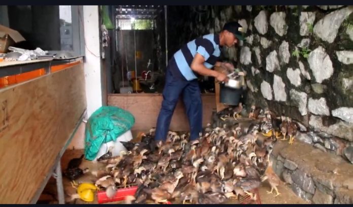 Di lahan yang tak begitu luas, sekitar 2 x 10 meter, Ichsan memulai rutinitas keduanya hari itu. Tangannya cekatan menabur pakan, mengganti air minum, sekaligus membersihkan kandang ayam dan bebek peliharaannya.
