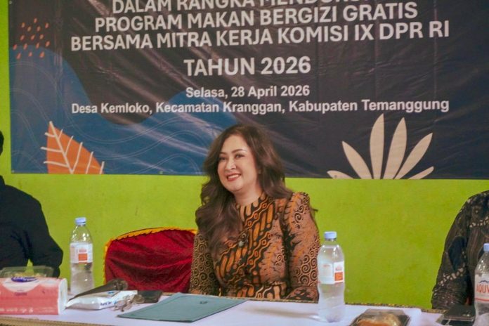 Temanggung – Sosialisasi Program Makan Bergizi Gratis (MBG) bersama mitra kerja digelar di Kantor Desa Kemloko, Kabupaten Temanggung, Selasa (28/4). Kegiatan ini menghadirkan Anggota Komisi IX DPR RI, Nafa Indira Urbach, Koordinator Wilayah Kabupaten Temanggung, Ulfi Rizki Amarani, Kepala Desa Kemloko Bejo, dan dihadiri oleh ratusan peserta.